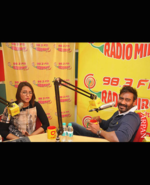Sonakshi Sinha and Ajay Devgn's at Radio Mirchi studio