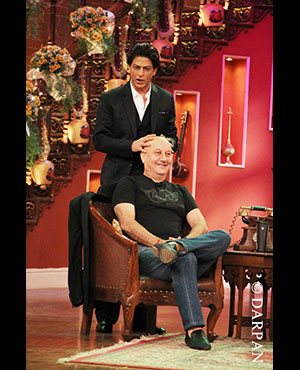 Dilwale Dulhania Le Jayenge is paving its way towards the completion of its 1000th week at Maratha Mandir on December 12, 2014 and here is a grand celebration already on the sets of Comedy Nights With Kapil with the evergreen couple Shahrukh Khan - Kajol who recreated magic on the sets with Anupam Kher, Farida, Puja , Mandira Bedi.