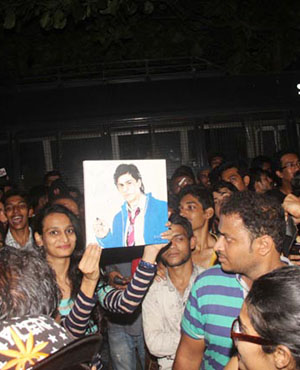 Shah Rukh Khan, who reached the milestone age of 50 today, has had fans waiting outside his home Mannat to wish their screen idol a Happy Birthday.