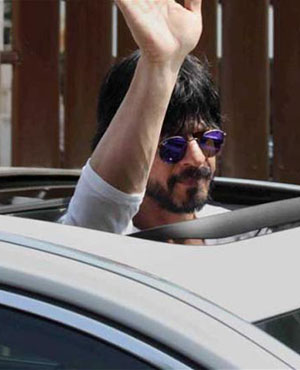 And accompanying Bollywood's Badshah was none other than li'l AbRam. SRK held AbRam in his arms as he waved waiting fans from Mannat's balcony. AbRam was vute as a button in shorts, t shirt and sandals, while dad SRK was in jeans and white T Shirt.