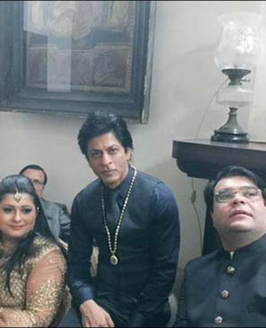 Seen here, Shah Rukh Khan with bride-to-be Sonali and IPL Chairman Rajeev Shukla