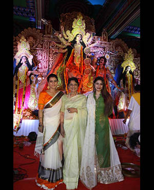Kajol, Tanisha,Sushmita Sen were seen accompanied at 'Durga Puja' celebrations in Mumbai .