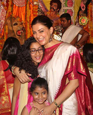 Kajol, Tanisha,Sushmita Sen were seen accompanied at 'Durga Puja' celebrations in Mumbai .