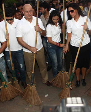 Hrithik Roshan, Neha Dhupia, Subhash Ghai, Shyam Benegal, Anupam Kher and the entire cast of Taarak Mehta Ka Ooltah Chashmahjoin PM Modi's Clean India initiative
