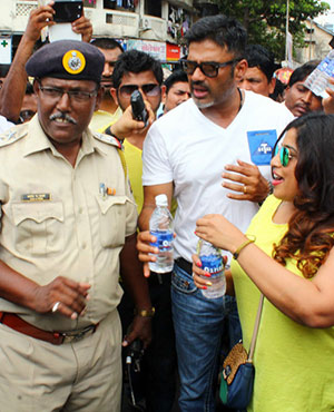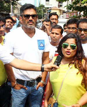 Sunil Shetty joined Red FM's campaign 'Mama Ko Paani Pilao' and distributed water bottles to the Mumbai traffic police to beat the scorching heat