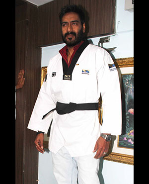 Ajay Devgan being felicitated by Taekwondo Grandmaster Hwangrom Korea in Mumbai