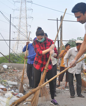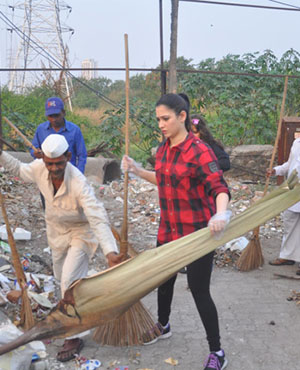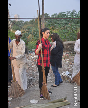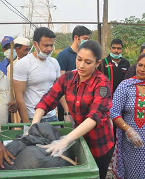 Actress Tamannaah Bhatia has become the latest celebrity to join Prime Minister Narendra Modi's 'Swachh Bharat' campaign. She took the broom to clean up a dirty locality along with her staff