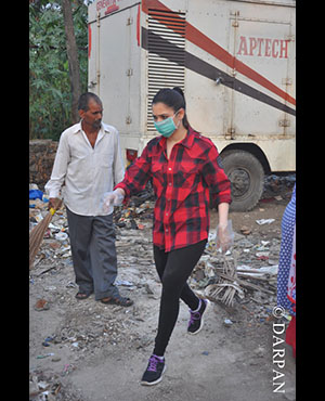 Actress Tamannaah Bhatia has become the latest celebrity to join Prime Minister Narendra Modi's 'Swachh Bharat' campaign. She took the broom to clean up a dirty locality along with her staff