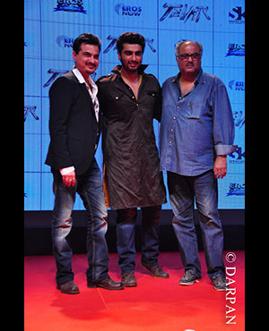 Arjun Kapoor, Sonakshi Sinha, Manoj Bajpai Boney Kapoor, Sanjay Kapoor, satish Kaushik, Prabhdeva attend the first look launch of their film Tevar at Yash Raj Studios