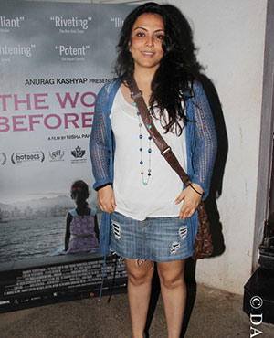 Sandhya Mridul, Abbas and Pakhi Tyrewala with Pooja Chopra and Anurag Kashyap at the first screening of documentary film 'The World Before Her '