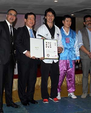 Kukkiwon, The World Taekwondo Headquarters, which is part of the South Korean Government, have conferred an honorary 5th degree black belt to Tiger Shroff at an event in Mumbai on July 30, 2014.
