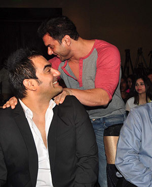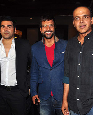 Film-maker Ashutosh Gowariker along with actors Sohail Khan, Arbaaz Khan and other celebs attend the first look launch of the film 'Unforgettable' at hotel Novotel in Juhu, Mumbai.