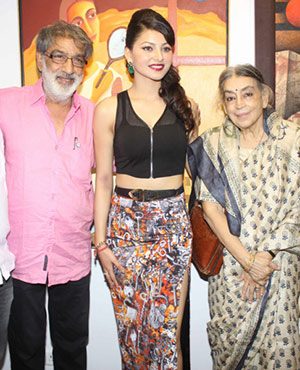 Urvashi Rautela known for acting opposite Sunny Deol in Singh Saab The Great strikes a pose for the lens at the inauguration of an art exhibition, held at JS Art Gallery
