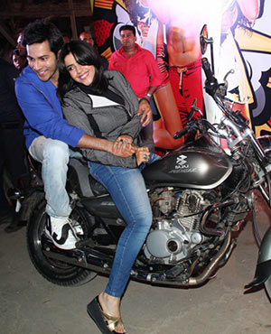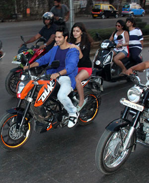 Varun Dhawan, the lead star of the upcoming film "Main Tera Hero" took its producer Ekta Kapoor for a bike ride to promote their film
