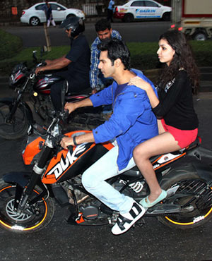 Varun Dhawan, the lead star of the upcoming film "Main Tera Hero" took its producer Ekta Kapoor for a bike ride to promote their film