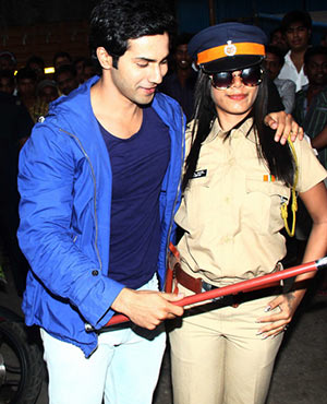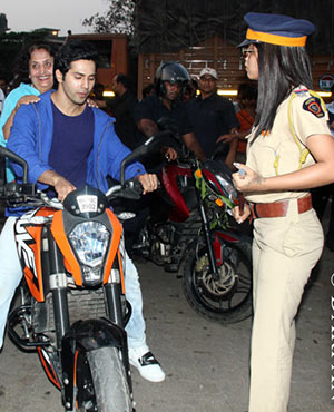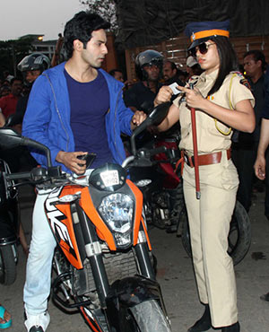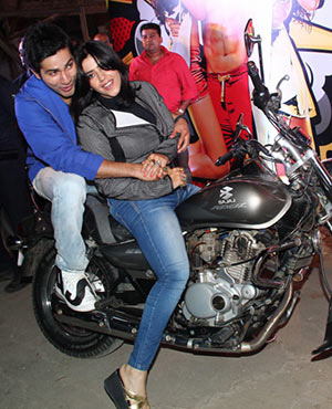 Varun Dhawan, the lead star of the upcoming film "Main Tera Hero" took its producer Ekta Kapoor for a bike ride to promote their film