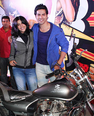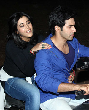 Varun Dhawan, the lead star of the upcoming film "Main Tera Hero" took its producer Ekta Kapoor for a bike ride to promote their film