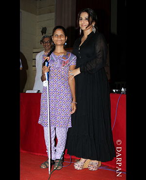 Bollywood actor Vidya Balan distributed specially prepared walking canes for the visually impaired at a city college in Mumbai