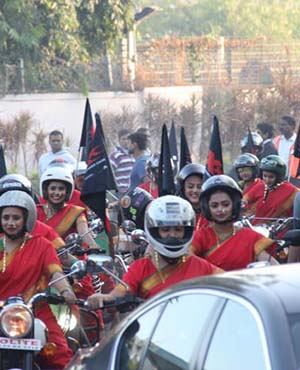 They arrived to a 'desi' fanfare of biker women dressed in red nauvaris (nine-yard saris) and yellow turbans, even as men played the Nashik 'dhol' (big drum) and trumpet-like curved folk instrument 'tutari'. Diesel looked excited as he waved out to the media and to the crowd there with much gusto.