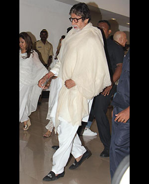 Big B, who co-starred with Vinod Khanna in cult Bollywood films like Reshma Aur Shera, Hera Pheri, Parvarish and Muqaddar Ka Sikander, arrived with his family - daughter Shweta and son Abhishek.