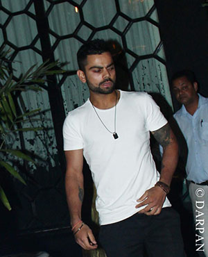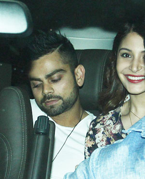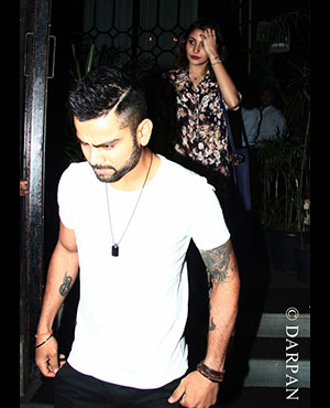 Anushka Sharma and Virat Kohli were spotted going out for a dinner in Mumbai. The couple was accompanied by Sharma's brother Karnesh.