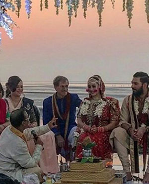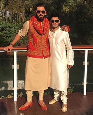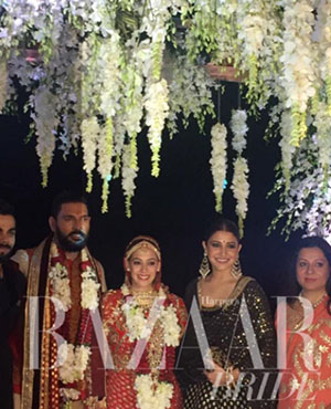 Anushka Sharma and Virat Kohli are also expected to join the festivities, pictures of which have been shared on social media. Hazel was resplendent in a red, embellished sari while Yuvraj opted for an off-white sherwani and paired with a red dupatta.