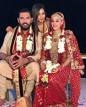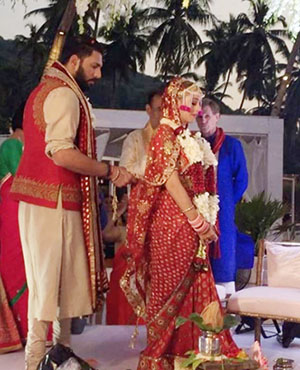 Anushka Sharma and Virat Kohli are also expected to join the festivities, pictures of which have been shared on social media. Hazel was resplendent in a red, embellished sari while Yuvraj opted for an off-white sherwani and paired with a red dupatta.
