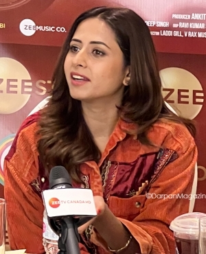 Punjabi actress Sargun Mehta was in Surrey for a press conference to promote her upcoming release Sohreyan Da Pind Aa Gaya. She interacted with the media and also made a visit at Darpan studios. Gurnam Bhullar also stars in the film alongside Mehta. The film will be in theatres worldwide on July 8th.