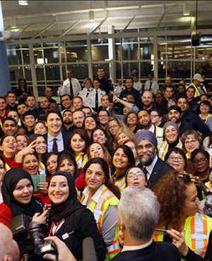 Syrian refugees are greeted by Canada's Prime Minister Justin Trudeau, Ontario Premier Kathleen Wynne, Defence Minister Harjit Sajjan on their arrival from Beirut at the Toronto Pearson International Airport in Mississauga, Ontario, Canada.