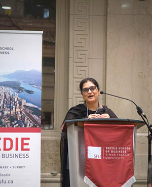 Special welcome was made by Mrs. Abhilasha Joshi, Consul General of India in Vancouver, SFU President Andrew Petter, and SFU Beedie Dean Ali Dastmalchian.