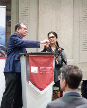 Special welcome was made by Mrs. Abhilasha Joshi, Consul General of India in Vancouver, SFU President Andrew Petter, and SFU Beedie Dean Ali Dastmalchian.