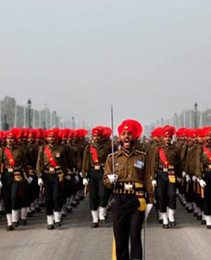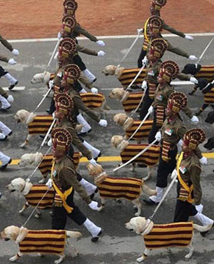 A contingent from the French 35th Infantry Regiment - elements of which served in India in 1781-84 - got the honour of leading the marching contingents and it performed with panache, preceded by a pipes and drums band. It is the first time a foreign army unit took part in the event.
