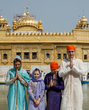 Trudeau was accompanied by his wife, Sophie Gregoire Trudeau, and two of his three children, who were also clad in traditional Punjabi outfits.