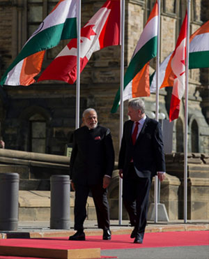 Earlier, PM Modi met Canada's Governor General David Johnston at Rideau Hall in Ottawa. Marking the first standalone bilateral visit in 42 years, Modi arrived in Canada today where the focus will be on setting a "trajectory" in ties through cooperation in energy, including civil nuclear, and attracting trade and technology for India's development.