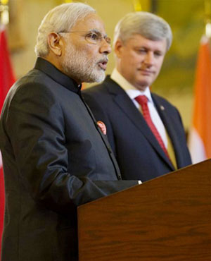 Earlier, PM Modi met Canada's Governor General David Johnston at Rideau Hall in Ottawa. Marking the first standalone bilateral visit in 42 years, Modi arrived in Canada today where the focus will be on setting a "trajectory" in ties through cooperation in energy, including civil nuclear, and attracting trade and technology for India's development.