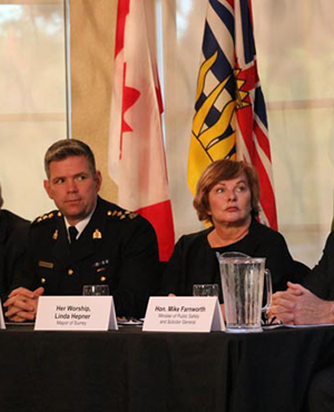 Linda Hepner, Mayor of Surrey, Dwayne McDonald, Officer in Charge Surrey Detachment, & Terry Waterhouse, Director of Public Strategies for the City of Surrey, provided an update on the current public safety situation in Surrey.