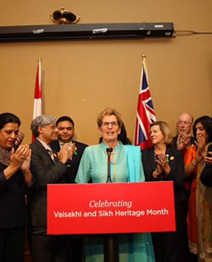 Top leaders in Canada's Ontario province led by Premier Kathleen Wynne joined the Sikh community in celebrating Baisakhi at the Ontario legislative assembly.