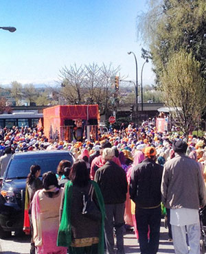 Here after, the Nagar Kirtan went along 49th Avenue to Fraser Street, and headed south towards 57th Avenue to Ross Street. The Granth returned to Ross Street Temple marking the conclusion of the procession. Vaisakhi is one of the longest parade routes in BC at 6 kilometres.