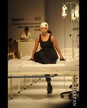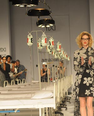 Known for subtle yet fashionable lines, designer Rajesh Pratap Singh on Wednesday left the audience at the Amazon India Fashion Week (AIFW) mesmerised with a black-and-white collection, which paid homage to medical practitioners who dedicate their life to the betterment of society.