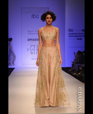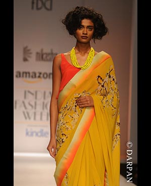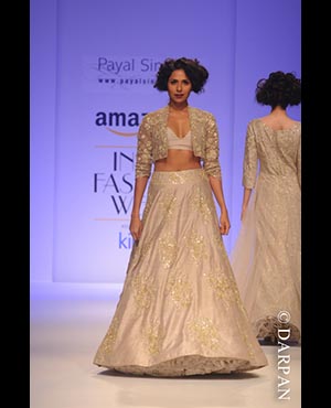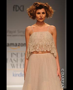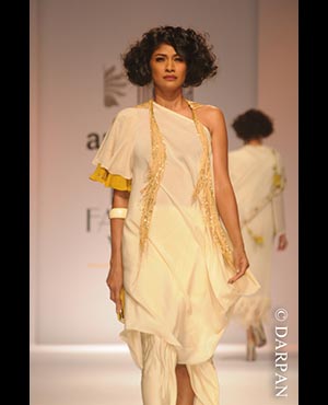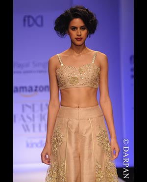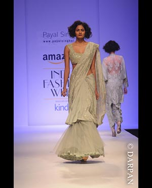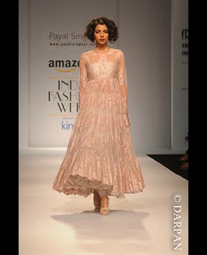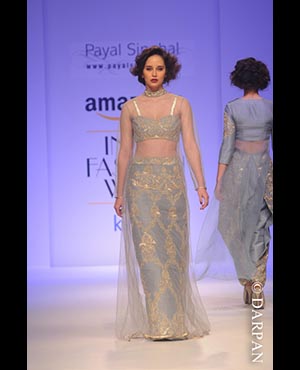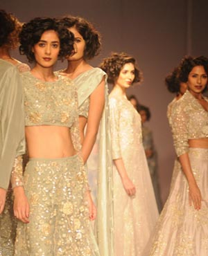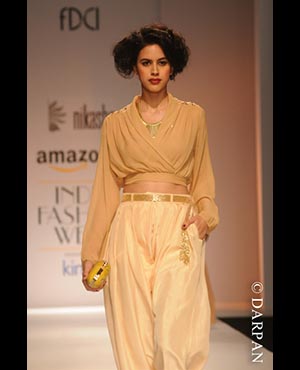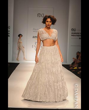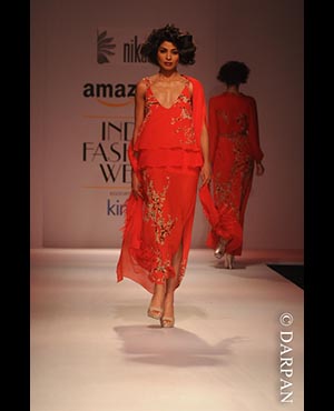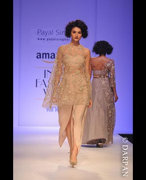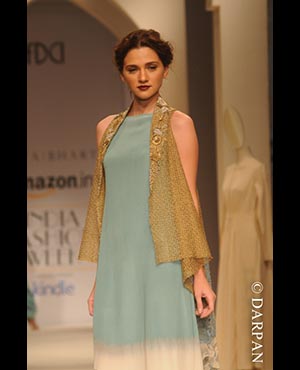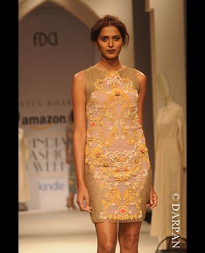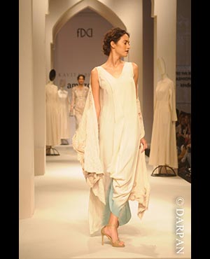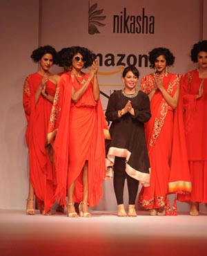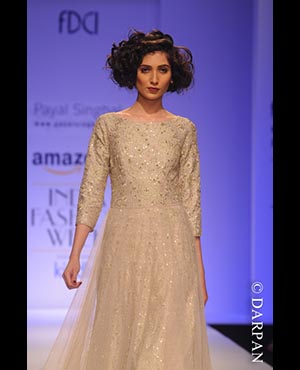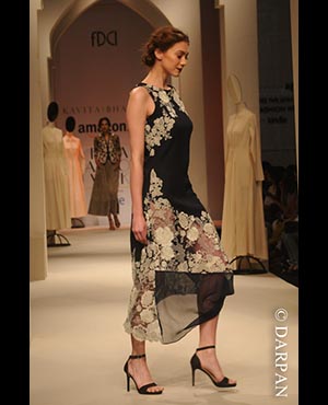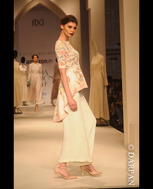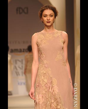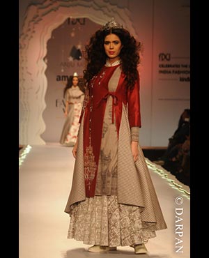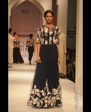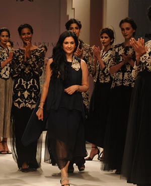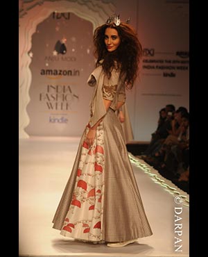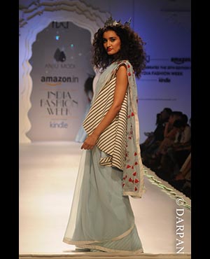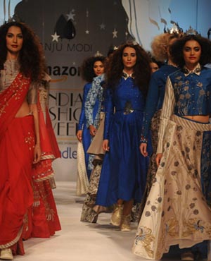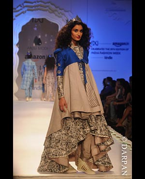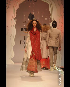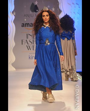A prince, princess, magnificent castles, swans and a ship emerging out of turbulent waves - the words may seem to pop out of a fairytale, but these are some of the elements that designer Anju Modi used to showcase her collection 'How to write a fairy tale' at the Amazon India Fashion Week