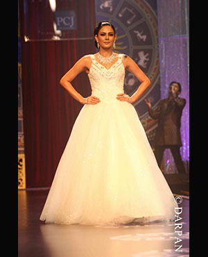 Bollywood divas such as Bipasha Basu and Sonam Kapoor sashayed down the runway for the grand finale of the India International Jewellery Week (IIJW) 2014 in India’s showbiz capital Mumbai recently. Bipasha looked beautiful in a Neeta Lulla creation.