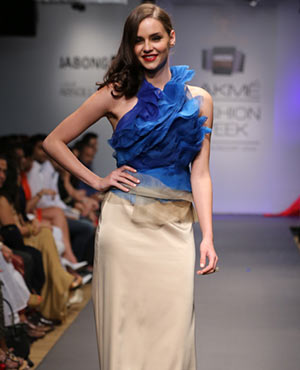 Sunny Leone, who scorched the ramp in designer Jyotsana Tiwari's peach-pink gown Sunday at the Lakme Fashion Week Summer/Resort 2014, says she was “nervous”, but enjoyed the “comfortable” outfit.