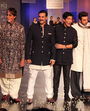 Amitabh Bachchan, Akshay Kumar, Ranbir Kapoor, Farhan Akhtar, and Sidharth Malhotra walked the ramp for Manish Malhotra’s fashion show - ‘Men for Mijwan’