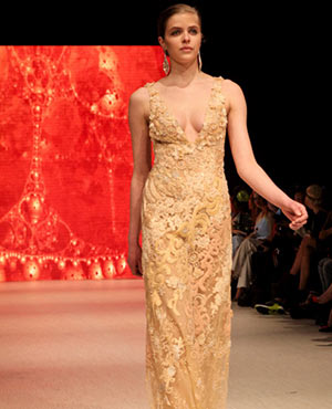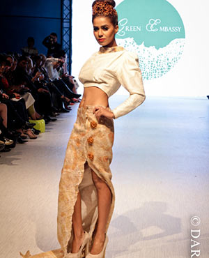 Susana Bettencourt, from Portugal was first up on the runway, focussing her collection on knitwear. Bettencourt emphasizes delicate and detailed knitwear and bold embellishments that various pop stars such as Lady Gaga relish.