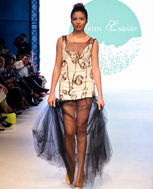 Susana Bettencourt, from Portugal was first up on the runway, focussing her collection on knitwear. Bettencourt emphasizes delicate and detailed knitwear and bold embellishments that various pop stars such as Lady Gaga relish.