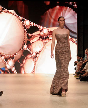 Susana Bettencourt, from Portugal was first up on the runway, focussing her collection on knitwear. Bettencourt emphasizes delicate and detailed knitwear and bold embellishments that various pop stars such as Lady Gaga relish.