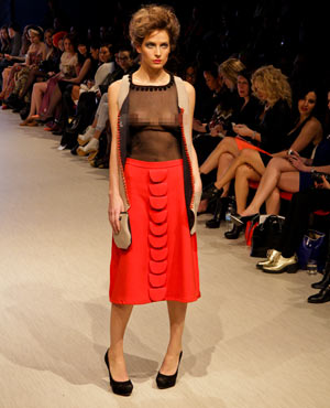 Sarah Armstrong featured her collection as an emerging designer from Vancouver. Armstrong has collaborated with filmmaker Jean-Philippe Marquis to showcase elements of her FW14 collection. She creates ready-to-wear pieces with an androgynous touch, adding a unique edge to her collection.