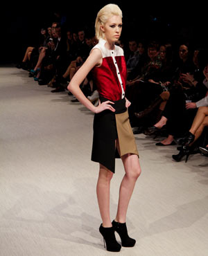 Sarah Armstrong featured her collection as an emerging designer from Vancouver. Armstrong has collaborated with filmmaker Jean-Philippe Marquis to showcase elements of her FW14 collection. She creates ready-to-wear pieces with an androgynous touch, adding a unique edge to her collection.