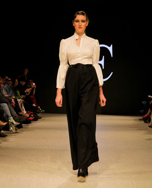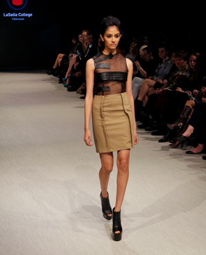 Sarah Armstrong featured her collection as an emerging designer from Vancouver. Armstrong has collaborated with filmmaker Jean-Philippe Marquis to showcase elements of her FW14 collection. She creates ready-to-wear pieces with an androgynous touch, adding a unique edge to her collection.