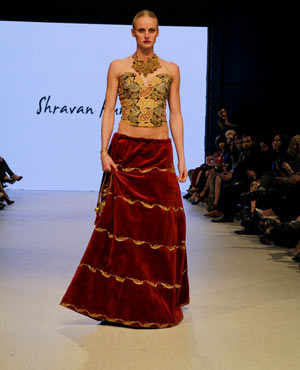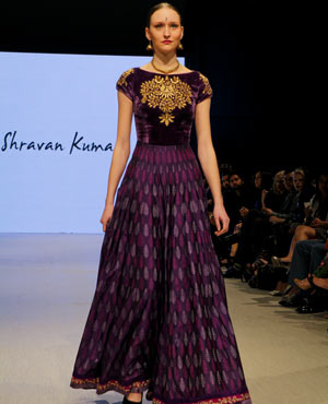 Concluding the evening was Shravan Kumar, who believes “fashion is a religion rather than a profession.” Based out of Hyderabad, Kumar strives to create high-end fashion with a conscious. His Fall/Winter collection was an ode to weaves and weavers, which took the audience through a tale of eight dynasties evoking a regal, majestic feel. Kumar’s show started off with a bold entrance, in which all of his models came out in a block formation down the runway – talk about grabbing the audience’s attention right from the start! Kumar’s pieces were rich and opulent, and you can only imagine the skill level that weavers have in order to create such visual masterpieces of art.